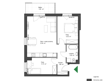 Zapraszamy do zapoznania się z ofertą 2-pokojowego mieszkania, składającego się z pokoju dziennego z aneksem kuchennym, sypialni, łazienki i balkonu.